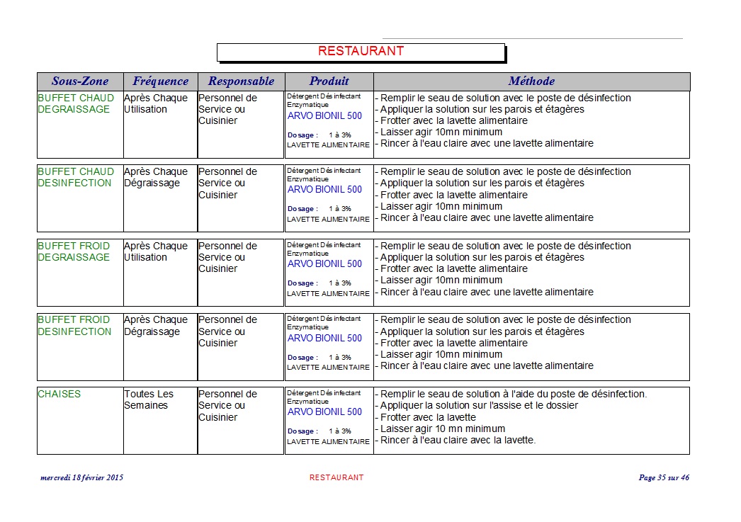 5 - Remise du Plan de Nettoyage définitif à afficher.